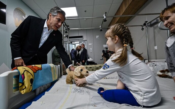 В понедельник, 8 сентября Энтони Блинкен без анонсированного визита, был замечен в детской больнице «Охматдет», туда он приехал чтоб проведать детей, которые пострадали от агрессии рф. Во время визита в больницу, госсекретарь Блинкен подарил девочке мягкую игрушку-собачку. Маленькая девочка, вместе с родителями приехали из оккупированной Херсонской области.